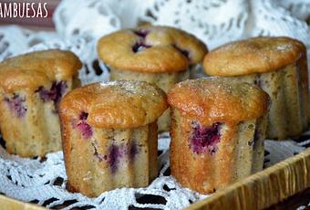 - Verter la mezcla en los moldes, repartir las frambuesas con cuidado, para que no se vayan al fondo del molde, y meter en el horno, precalentado a 180ºC, durante 25-30 minutos, aproximadamente.