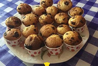 Terminamos de rellenar con una cucharadita de mezcla dejando libre 3/4 partes del molde y esparcimos trocitos de chocolate para terminar.