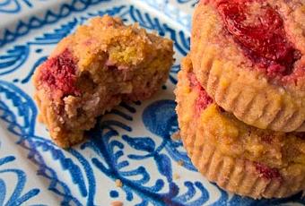 ***Ingredientes1.5 tazas de almendra molida1/2 taza de polenta o harina de maíz1/2 cucharadita de bicarbonatouna pizca de sal2 huevos3 cucharadas de aceite de oliva Virgen Extra4 cucharadas de miel1/2 cucharadita de esencia de almendra (también se puede usar de vainilla, o ambas)3/4 de taza de fresas