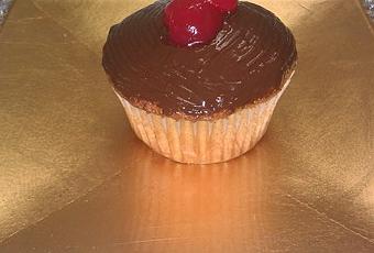 4. Sacamos del horno, retiramos los moldes de la placa y los ponemos sobre una rejilla para que enfríe y el resto que no le pusimos el azúcar calentamos nocilla en el microondas y le dimos cobertura y para finalizar le pusimos una guinda.