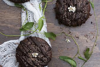 Ingredientes (12 unidades):- 90 g de Endulsana.- 1/2 cucharadita de extracto de vainilla.- 150 g de queso de untar (la receta original queso batido).- 4 claras de huevo.- 120 g de copos de avena triturados.- 8 g de levadura química.- Una pizca de sal.- 20 g de cacao en polvo.- 180 g de leche desnatada.Para decorar:3 onzas de chocolate puro.