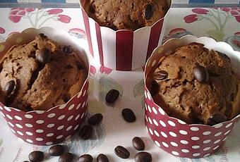 Rellenar los moldes, previamente untados con mantequilla y ligeramente espolvoreados con azúcar, y poner sobre cada magdalena unos granos de café, (podemos poner perlitas de chocolate). Hornear las magdalenas a 180 grados durante unos 20 minutos. Retirarlas del horno y dejarlas enfriar antes de desmoldarlas y servirlas.
