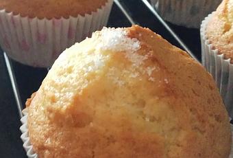 - 360 gr. de harina Precalentamos el horno a 230 grados. En un bol añadimos los huevos y el azúcar y batimos con la ayuda de un robot de cocina durante 15 minutos hasta que veamos que nuestra masa es esponjosa, pálida y duplica su volumen (el éxito de estas magdalenas es conseguir añadir aire a la masa), cuando estemos en la mitad del batido, añadimos la ralladura de limón y seguimos batiendo hasta completar el tiempo. Añadimos la nata y el aceite y batimos bien hasta que nuestra masa esté homogénea. Por último añadimos la harina y la levadura (mezclados previamente) poco a poco y volvemos a batir hasta que nos quede integrada. Ponemos las cápsula de papel en los moldes y añadimos la masa rellenando un tercio de su capacidad (una bola de helado). Las espolvoreamos generosamente con azúcar.