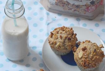 Hoy vengo con una receta muy otoñal, y es que a mi las manzanas me recuerdan al otoño y siempre me gusta ponerlas en los bizcochos o magdalenas, así que cuando vi que la Degustabox de septiembre traía un paquete de granola riquísimo de Fitness de Nestlé, pensé en coronar unas deliciosas magdalenas de manzana con la granola a modo de crumble.