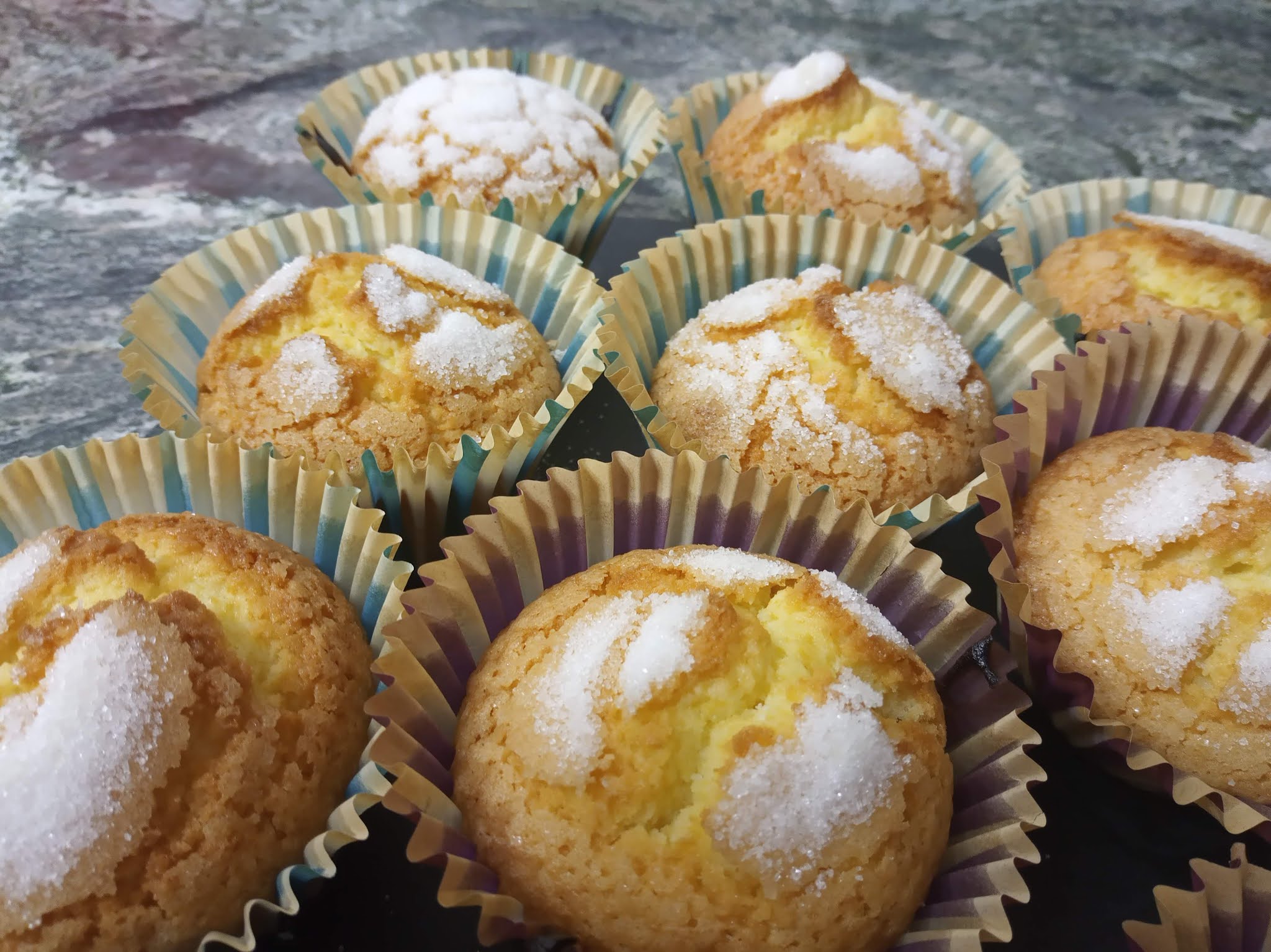 Escudillar en los moldes de magdalena y agregar azúcar blanquilla por encima de cada una.ç