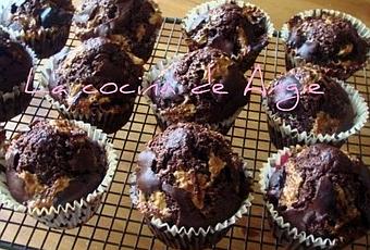Receta que me dio mi amiga Beatriz y está riquísima. Se la voy a dedicar a otra amiga: Natalia, que mañana la ingresan en el hospital durante un tiempo. Ella ya sabe que le deseo lo mejor, y estoy segura que va a salir muy pronto, muy fuerte y con muchas ganas de vivir! Te haré estas magdalenas cuando vengas a verme. Un beso muy fuerte!- En un bol, batir 2 huevos medianos con 250 ml. de leche y 6 cuch. de aceite de girasol (u 85 grs. de mantequilla fundida y enfriada); añadir 115 grs. de azúcar glas o azúcar moreno, 225 grs. de harina bizcochona, 55 grs. de cacao en polvo y una chispita de sal. Añadir 50 grs. de nubes cortadas a trocitos con unas tijeras, y mezclar todo bien.