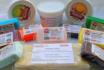 En el lote que me enviaron me encontré con pastillas de 100 grs de fondant de varios colores todos listos para usar y sin gluten, un bote de 200 grs de azúcar glas, 500 grs de mazapán, y dos botes de frosting de vainilla y limón. Os recomiendo que visiteís su web porque seguro que habrá muchas cosas que os interesen, su gama de productos es variada y podeís encontrar desde Albúmina Rápida Clarakel, Yema Decoración, Batata Relleno, Crocanti de Almendra, Yema Blanda, Mazapán Horno, Yema Dura, Azúcar Lustre y Antihumedad, Crema de Limón e inlcuso Crema Pastelera.