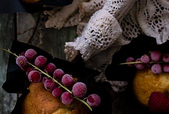 - Horneamos las magdalenas en sus correspondientes cápsulas, añadiendo los frutos rojos con los dedos.