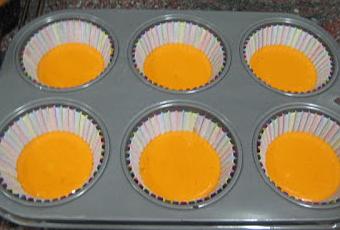 Preparación: Montar las yemas con el azúcar, el zumo de naranja y la ralladura de naranja. Cuando esté bien batido añadir el puré de zanahoria y las almendras molidas. Una vez bien incorporado todo, agregar la harina mezclada con la levadura química y las especias. Una vez que esté todo bien mezclado montar las claras a punto de nieve y agregarlas suavemente para que no pierdan su volumen. Engrasar con mantequilla un molde para muffins o un tapete de silicona para 12 muffins o papeles grandes de magdalenas que, claro está, estas dos últimas opciones no necesitan engrasado. Cocer en el horno a 180º C durante unos 20-25 hasta que al pinchar con una aguja, ésta salga limpia. Dejar enfriar sobre rejilla y antes de servir adornar al gusto con unas zanahorias hechas de mazapán teñido y azúcar glas o sólo con azúcar glas.