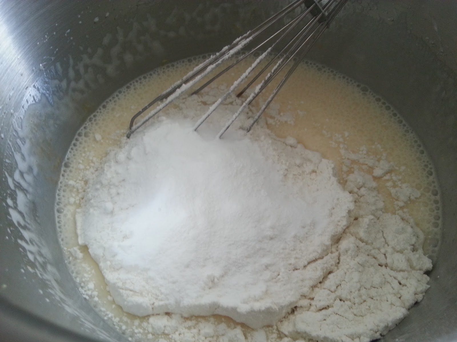 3. - Por último, añadimos la harina junto con la levadura y removemos hasta que esté bien ligado, pero sin batir demasiado. Tapamos la masa con un paño y dejamos reposar unos 30 minutos.