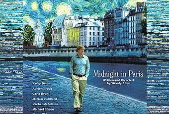 La trama contrapone dos mundos opuestos: el superficial y pseudointelectual de una clase alta americana preocupada únicamente por la apariencia, la vacuidad, el lujo y las compras (impagable el momento en que, en plena cena en un restaurante de lujo entre la futura novia y sus padres, aparece en la mesa de al lado un comensal insospechado: un perro) y el de los artistas bohemios, apasionados de la vida y enamorados de la belleza, que poblaron París durante los dorados años veinte. Pocos como Allen iban a saber mezclar la cantidad justa de admiración e ironía necesarias para darnos su Hemingway, vibrante y apasionado; sus Pablo Picasso y Gertrude Stein discutiendo sobre un retrato femenino, los Fitzgerald devorados por los celos, o su Dalí histriónico, obsesionado con los rinocerontes.