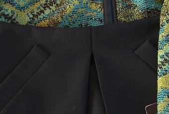 Falda negra con picos delanteros de Zara (aquí) Chaqueta con remates en cuero de Zara