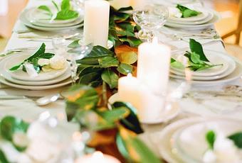 La verdad es que este centro de mesa nos encanta. Básicamente porque además de se bonito y fácil de preparar, es low cost total. Velas + magnolias, y un resultado precioso, no os parece?? Además, la mesa tiene otros detalles que nos encantan, como los cubiertos vintage, o los distintos DIY.En este post, hemos querido añadir el DIY que hacen para colocar en cada plato y "ayudar a romper el hielo" (no os pasa que a veces os invitan a cenas y se crea una cierta tensión??? Pues esta idea es perfecta y divertida para solucionar ese problemilla! Más abajo os lo mostramos!), pero en la web de StyleMePretty, podréis encontrar cómo han hecho las servilletas y también los platos. Genial, no?