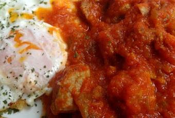 - Cuando se evapore el alcohol, añadir 800 grs. de tomate triturado, 1 hoja de laurel, orégano, tomillo y nuez moscada.