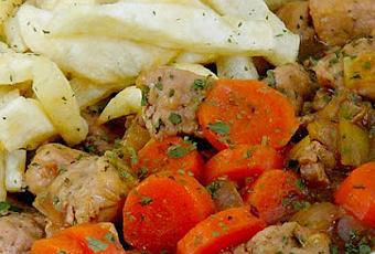 - Si la salsa queda muy líquida, espesar con un poco de harina. Servir con patatas fritas.