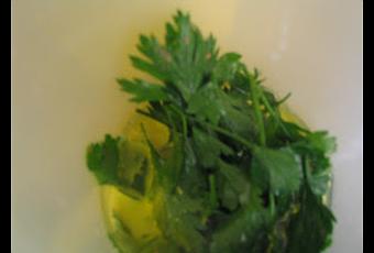 Como verán, añado de entrada al cubilete la sal gorda (muy poca), los ajos, el perejil, la leche de soja (del tiempo, muy importante) y un poco de aceite de oliva suave (me gusta el sabor, si les parece muy fuerte lo pueden hacer igual con aceite de girasol). Trituro con el brazo en la parte baja, sin mover. Sigo añadiendo el aceite dejándolo caer como un hilo y cuando lo vea un poco más espeso, subo el brazo y añado un poco más de aceite. Subiendo y bajando el brazo conseguiremos la textura final deseada. Queda bastante espesa y dura tiempo pues no contiene huevos, sino leche de soja. Sano para todos pues nos evitamos la tan temida salmonelosis.