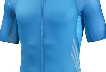El maillot adiZero (hasta el momento, sólo disponible en azul celeste con motivos en blanco) es una prenda única que reclama tener un peso específico de apenas 65gr (detalle de gran importancia para todos los obsesivos con el tema del peso en el ciclismo); y por su perfil de alto desempeño su costo no es para nada contenido (costo regular de 149 euros).