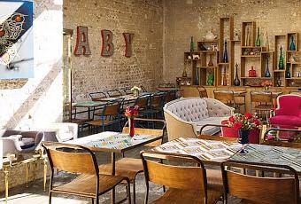 No sé muy bien cómo definir a "Maison Trois Garcons" porque es varios establecimientos en uno (algo, por otra parte, muy habitual últimamente). Está en Londres, en el barrio de Shoreditch, y en él se puede disfrutar de una taza de té o de café, comer un pedazo de tarta, antes de comprar algún artículo de moda o de decoración, todo ello en un ambiente decorativo perfecto que bascula entre el estilo industrial (unas magníficas paredes de ladrillo visto, techos altísimos, instalaciones a la vista) y el vintage (mobiliario recuperado, retro, etc.) sin olvidar piezas clásicas, de época, que salpican alegremente los diferentes espacios.