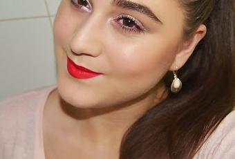 Un buen labial rojo me hizo compañía ese día, en este caso utilicé un jumbo, el 03 de Astra Makeup.Y un maquillaje sencillo de ojos con el color tattoo de Maybelline de base para el pigmento de NYX y para dar profundidad la sombra de Kiko 136.Jumbo de ojos rosa tono 59 para las pestañas inferiores y mascara de pestañas a tope.