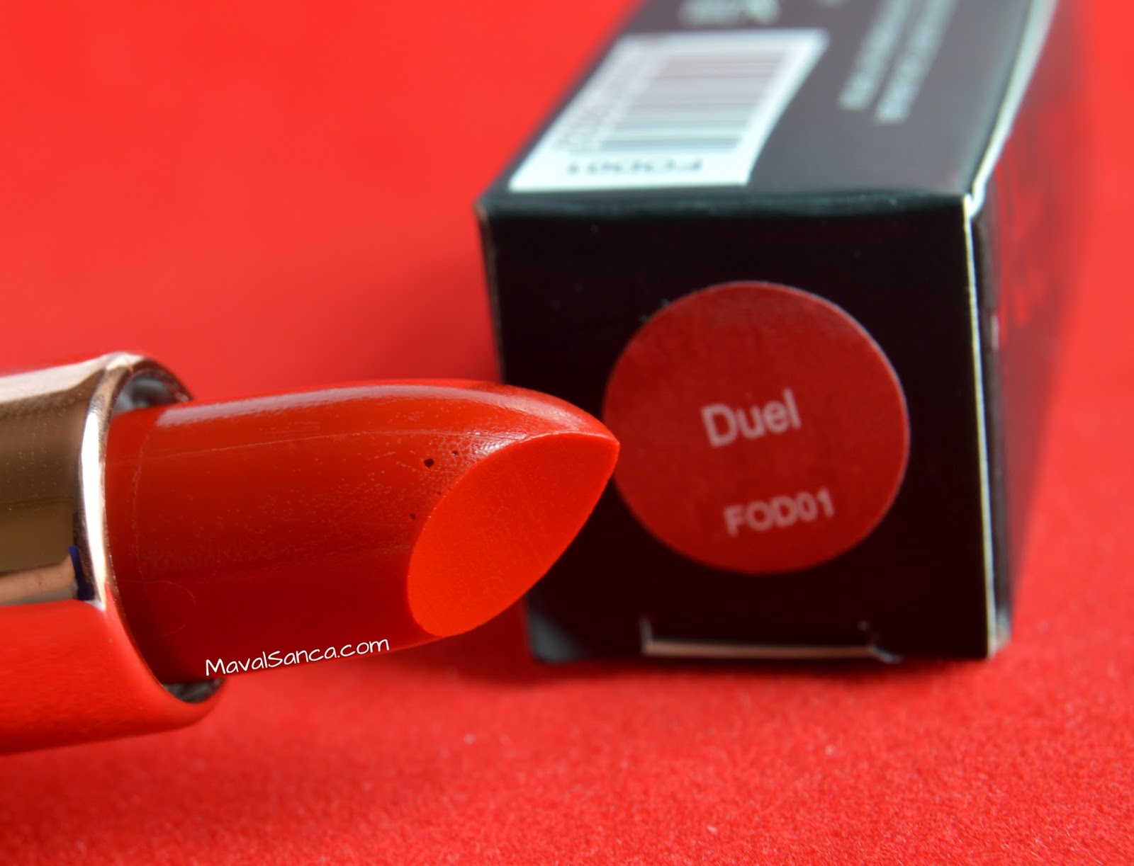 A dark red lipstick with creamy finish.