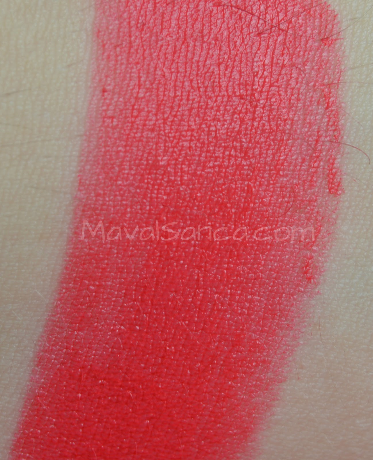 Pinky red with creamy finish lipstick.