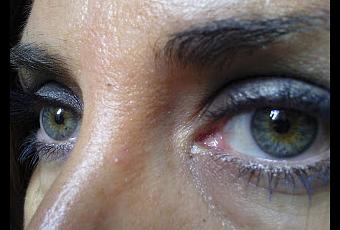 El delineador, lo aplique como si fuera una sombra en crema, primero hice algunos trazos y luego con el dedo lo desparrame por todo el parpado movil.