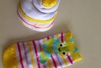 Como veis, es muy sencillo. Se trata de enrollar cada body sobre el calcetín, dejando una puntita que sobresalga a modo de guinda.