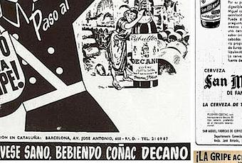 Así tenemos algunos ejemplos:-. el coñac 103 ó el coñac Decano...: ambos se promocionaron para los estados gripales, en general. -. la cerveza Cruzcampo, como tónico y bebida familiar.-. la cerveza San Miguel: que intentó promocionarse como depurativa y digestible.-. a la quina Santa Catalina le recordamos el siguiente eslogan: "es medicina y es golosina".-. el vino en general, como "alimento", en el sentido más calórico del término...
