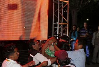 Iniciando el concierto todo marchaba con normalidad, pero comenzaron ocurrir los incidentes y es que cerca de 5 personas se desmayaron durante toda la presentación. Debido a que las cercas estaban aseguradas y no había acceso a ellas, el personal de Protección Civil tuvo que riesgosamente brincar cada una de estas para acudir al rescate de las personas para luego cruzarlas cargadas e igualmente brincar las cerca, dificultando las labores de auxilio e incluso poniendo en peligro a la propia persona.