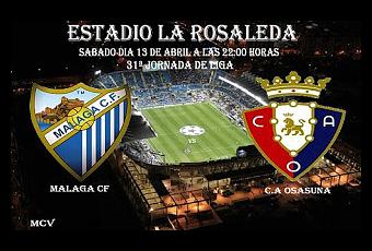 Este sábado el Málaga recibe al AT.Osasuna a las 22:00 horas en partido correspondiente a la jornada 31 de liga.Nos bajamos a la tierra después de la maravillosa Champions que ha jugado el Malaga le pese a quien le pese y ahora hay que centrarse en la competición domestica de la liga.