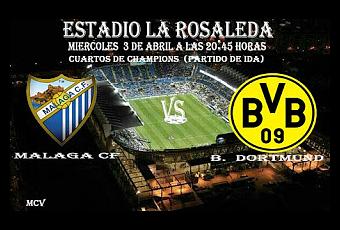El Miércoles día 3 de abril de 2013 a las 20:45 horas en partido correspondiente a la ida de la UEFA Champions League se enfrentarán el Málaga CF y el Borussia de DortmundEstá este Málaga nuestro escribiendo los mejores capítulos de su historia, y los malaguistas nos preparamos para que este miércoles sea otro día histórico y esperemos que no el ultimo que tras este día de Champions en lo sucesivo vengan muchos mas los malagueños no queremos que esto termine queremos seguir soñando porque soñar es gratis