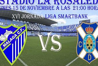 Este lunes el Málaga CF recibe en la Rosaleda, a las 21:00 horas, al CD Tenerife en partido correspondiente a la16ª jornada de la liga SmartBank.