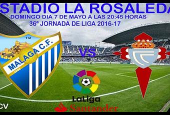 Esta semana se juega la 36ª Jornada de liga 2016-17 y el Málaga juega en la Rosaleda el domingo día 7 de Mayo a las 20:45 horas ante RC Celta de Vigo.