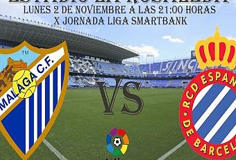 Hoy lunes día 2 de Noviembre a las 21:00 horas el Málaga recibe en la Rosaleda al Español de Barcelona para enfrentarse en la 10ª jornada de la liga SmartBank.