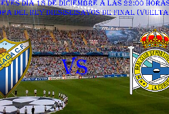 El jueves día 18 de diciembre a las 22:00 horas el Málaga recibe en la Rosaleda al Deportivo de la Coruña en partido de vuelta de los dieciseisavos de final de la copa del Rey.