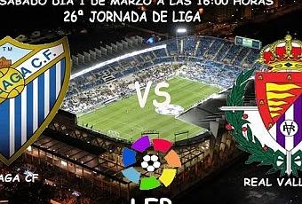 Este sábado día 1 de Marzo y a un horario más normal las 16:00 horas visita la Rosaleda el Real Valladolid en la jornada 26ª de liga.Llega el equipo Pucelano, a este encuentro con el agua al cuello esta en puestos de descenso exactamente por detrás del Málaga, por lo que se antoja un equipo peligroso, que se agarrara a un clavo ardiendo para salvar la categoría.