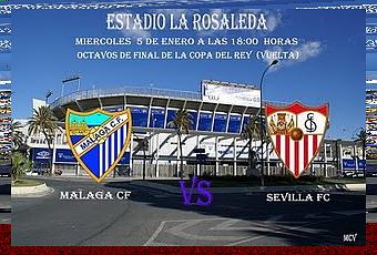 Este miércoles 5 de enero a las 18:00 horas ( el que ha puesto los horarios se ha lucido, haciendo coincidir el partido con la cabalgata de reyes) el Málaga CF disputara el partido de vuelta de los octavos de final de la copa del Rey ante el Sevilla FC, en la ida se vio un partido muy disputado que acabó ganando el Sevilla por errores defensivos de bulto del Málaga.