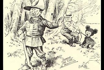 Caricatura que hizo célebre a Roosevelt al no disparar a un oso "preparado" en una cacería por considerarlo poco deportivo.