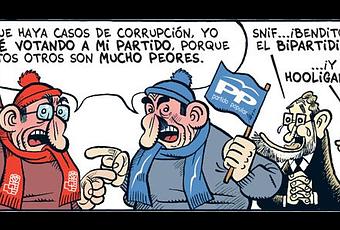 La integración de los partidos de masas en el Estado no produce la de las masas, sino la de los partidos, y éstos no conforman la voluntad general, sino la voluntad de poder de la clase política. Su transformación en órganos estatales los hace enemigos de la libertad y amigos del orden público. La falta de representación de la sociedad separa el país oficial del país real. Un mismo afán estatal une a los partidos en un consenso negador de la política y de la posibilidad de control del poder. La justicia sobre lo político se imparte en función de las cuotas judiciales de partido. La corrupción no la causa la débil moralidad de los gobernantes, sino la impunidad de sus crímenes. La conciencia nacional se disuelve en convenios de reparto del poder territorial entre ambiciones nacionalistas. Y la información de la verdad no tiene espacio en unos medios de comunicación que viven pendientes de los favores empresariales de los partidos estatales.