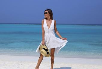 Estas fotos de hoy creo que son mis favoritas de Maldivas. Es verdad que fotos en bikini con estos colores, este agua, son geniales, pero lo que más me apetecía es tener fotos con un vestido blanco para resaltar el moreno, caminando descalza por la playa, y a mi aire con mi “modo feliz” de siempre. Aquí soy “muy yo”. Ojalá pueda volver pronto a disfrutar de nuevo de este paraíso.