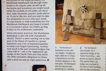 Ayer me pasaron por FB esta imagen,que debe de ser de la WD de este mes o una pasada recientemente.No es mas que una mochila para llevar a la espalda el maletín de miniaturas(El normal,no el doble,por lo que veo en las imágenes) en vez de llevarlo en la mano.Es de tela,cierre con cinchas,serigrafiados y la opción de personalizarla.No se el precio pero no creo que sea barata.Y al verla,el caso es que me ha dado una sensación de cierta familiaridad.Y rebuscando por el pc,por fin he visto porque me era tan familiar.Era por esto: