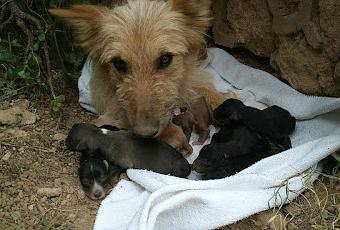 Familia de nueve miembros, su situación es dramática. A sus dueños los han expropiado y al parecer los han dejado abandonados en la calle. Tienen acceso a un hueco dentro de una casa donde hay una piscina con agua por lo que los pequeños sino mueren ahora de inanición quizá caiga alguno si sobreviven cuando puedan caminar. Están en serio peligro. Hay uno que está en las últimas. Se necesitan nodrizas para ir sacándolos y también acogida para los papás, tienen sobre una semana de edad.