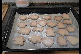 Arrastrada por el deseo de hacer algo nuevo con Miss (debido quizá a un pequeño sentimiento de culpa por no poder dedicarle todo el tiempo que me gustaría y que se merece) y por el orgullo de demostrar(me) que si quiero puedo reducir distancias entre la cocina y yo, ayer me lancé a la piscina, la de la repostería y la de la incertidumbre, esta última tanto por el qué saldrá como por el qué pasará (¿le gustará a Miss la actividad?, ¿le gustará a Mister que le dejemos apartado un rato? ¿seré capaz de no estallar entre harinas, los "yo lo hagoooooooo!!!" de la niña y los lloros del enano?... Ufffffff).Todo empezó por la mañana, cuando en la oficina, entre proyectos y reuniones, me puse a googlear "hacer galletas con niños". Encontré una receta que me pareció excesivamente fácil, bajé a comprar los utensilios (moldes cortagalletas y rodillo) y los ingredientes (mantequilla, azúcar glace y harina) y por la tarde, al volver del cole-patio, nos pusimos manos a la masa.Puesto que mis nociones de cocina no llegan ni a básicas, el primer intento fue fallido; para mezclar los ingredientes utilicé las barillas y en lugar de una masa más o menos homogénea salieron cientos, miles, millones de bolitas con las que imposible hacer una pasta y amasar. Pero... tras releer la mini-receta cinco o diez veces más y comprobar que no se me había escapado ningún ingrediente, caí en la cuenta de que debía deberse a las barillas, así que repetí la operación (mezclar ingredientes) y esta vez lo hicimos con las manos, logrando una masa que ni la Arguiñaño. Ni que decir que Miss encantada con eso de meter las manos en la masa.También colaboró amasando con el rodillo, pero lo que mejor se le dio, sin duda, fue cortar la masa, para lo que utilizamos unos moldes de figuritas con forma de corazón, elefante, oso, hipopótamo y estrella. Ella cortaba y yo ponía en la bandeja del horno (sobre papel vegetal, que increíblemente ya existía en mi cocina). Mi pequeña decepción llegó cuando vi las pocas galletas que salían, pero bueno, para probar suficiente.Tras 10 minutos en el horno y el posterior enfriamiento (a la vista no dicen mucho), la primera en probar una galleta fue Miss, y........ (música suspense).................... Ummmmmmmmmmm, riquísima! Bien!