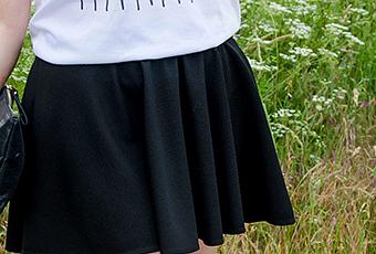 Hoy os traigo otro outfit de esos que a mi tanto me gustan, blanco y negro + camiseta con mensaje y falda con vuelo, dos combinaciones que me encantan, y aún más sin van juntas. Ya sabéis que adoro los look con toque femenino, sencillos y sin demasiadas complicaciones, es como más cómoda me siento, y normalmente, para mi, eso es lo más importante en un estilismo. Elegí este look el pasado domingo para asistir a otra de esas comidas en familia que marcan el inicio del verano, sin duda, es una época en la que nos reunimos mucho, y está genial salvo que casi siempre tenemos que desplazarnos a una zona de montaña y... ¿No echáis de menos ver el mar de fondo? Yo mucho. ;)