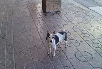 Lleva tres días vagando, unos niños jugaron con él, y eso ha hecho que sea inseparable, aquí está esperando que salgan del Mercado, impaciente cada vez que se abre la puerta, y cuando yo he entrado esa familia me ha dicho que se van a Madrid ... mañana por la tarde. Que hará este indefenso? Correr tras del coche, quedarse en la puerta donde duerme defendiéndoles como me han contado, y ni siquiera le han dado de comer.
