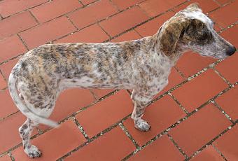Manchitas, cachorra de 7 meses en un pueblo de Huelva.