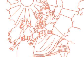 Ficha para colorear y leyenda para niños sobre Manco Cápac y Mama Ocllo.