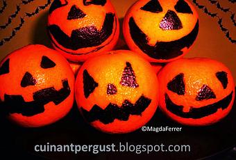 Pintar con un rotulador caras monstruosas, simulando calabazas de Halloween. Decorar y comer después.