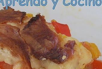 Las lascas de bacalao, el rallado de auyama, el rallado de zanahoria, los tomates y pimientos, salpimentamos y las especias a gusto.