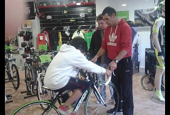 Cuando estábamos allí , habían varios ciclistas del club ciclista de Canet , que me ayudaron a probarla en la calle, en los primeros momentos...jaja...